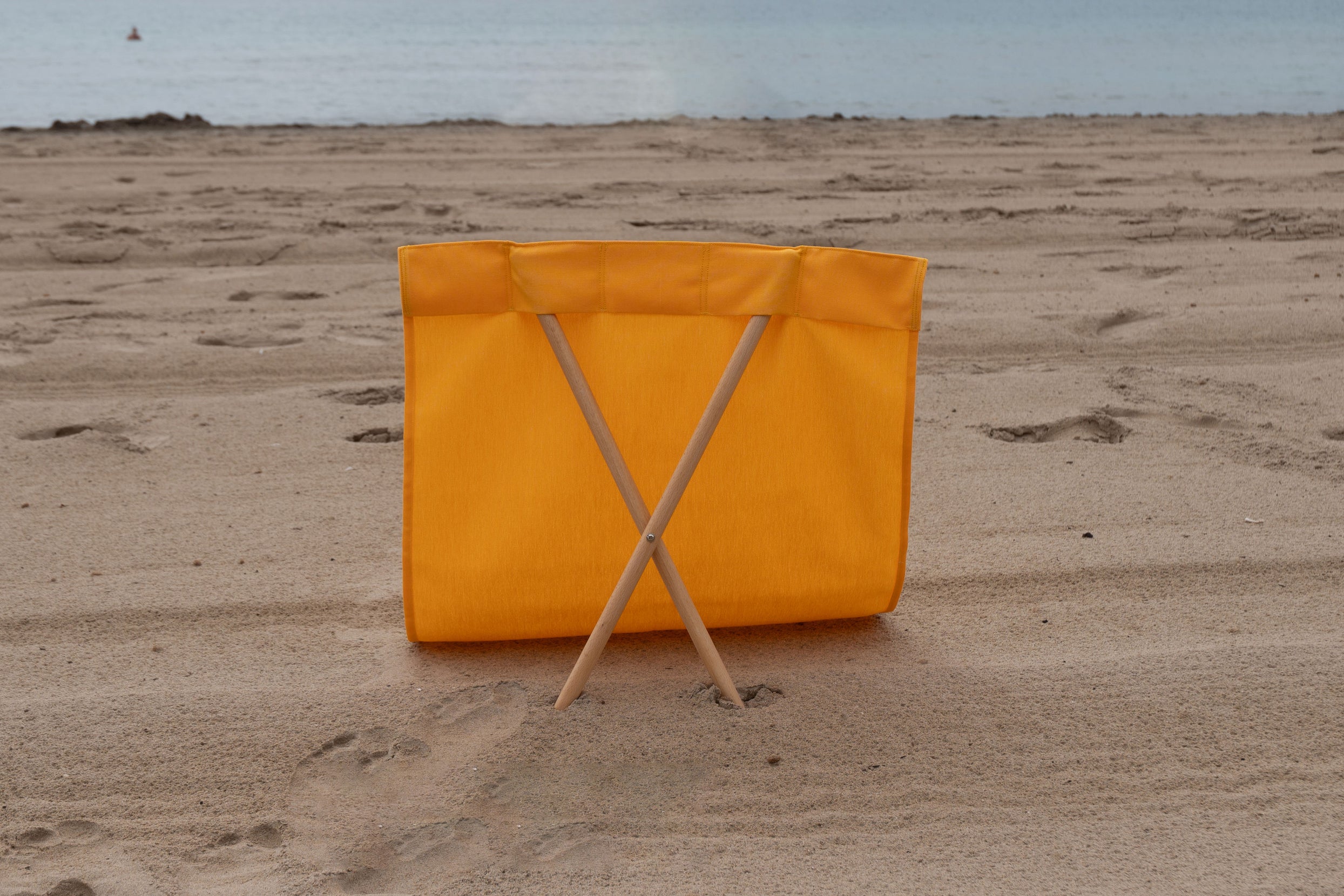 Silla toalla en amarillo. Tela resistente, ideal para tus escapadas, tanto de playa como de camping. Anti manchas de líquidos y con una tela super resistente.